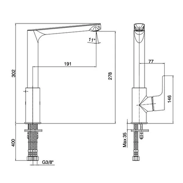 - 3 bar təzyiqdə maksimum su axını sürəti dəqiqədə 7,5 litrdir