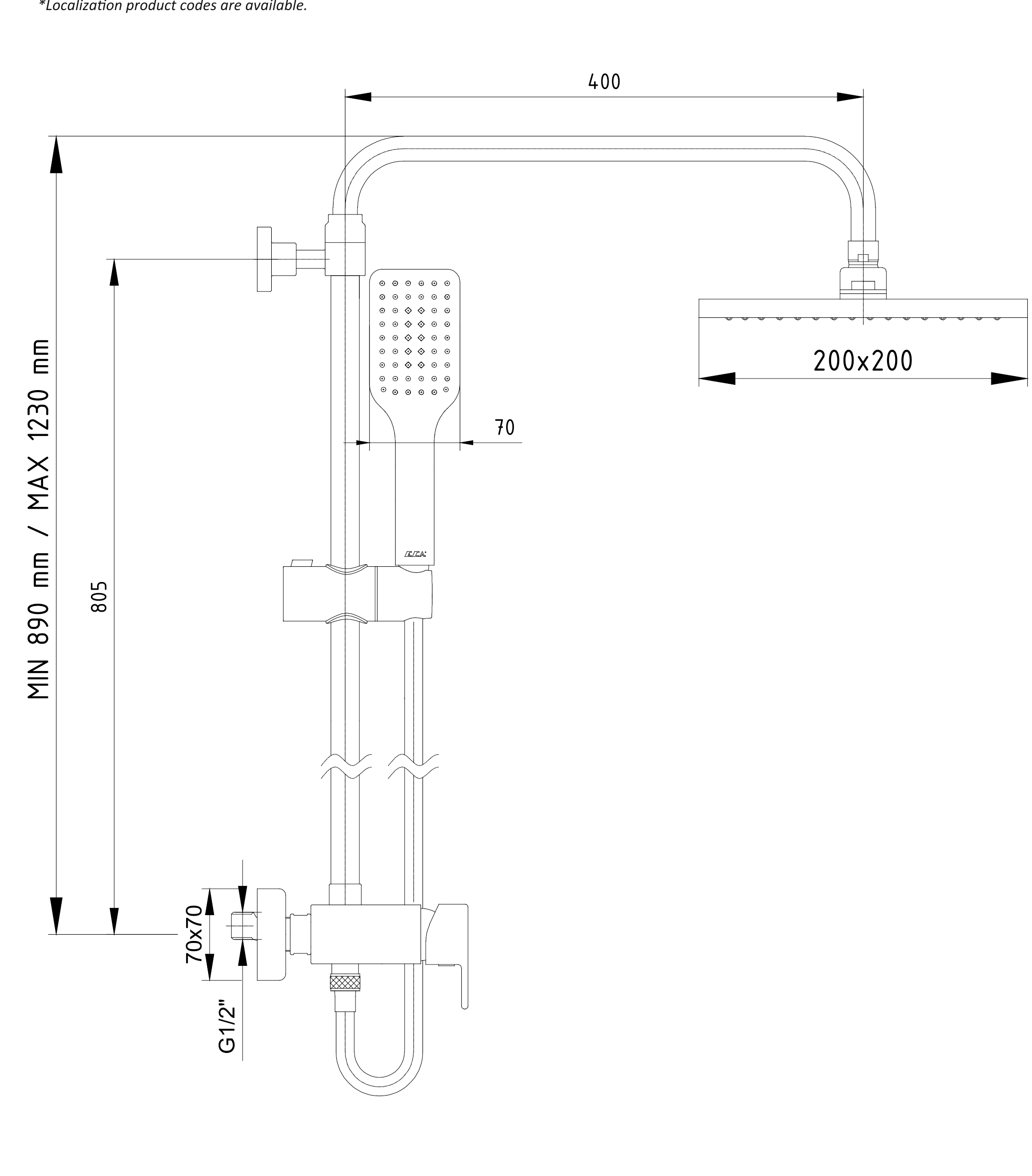 - Məhsulun hündürlüyü min 890 mm - maksimum 1230 mm
